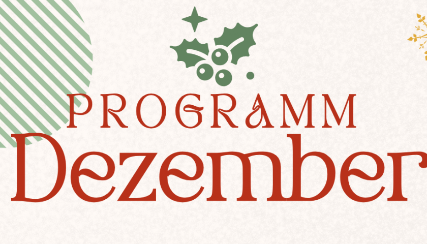 Der Dezember wird bei uns gemütlich, kreativ und richtig festlich! Hier findest du alle Highlights unserer Monatsprogramms- wir freuen uns, wenn du vorbeikommst. 05.12 – 07.12: In diesem Jahr verlegen