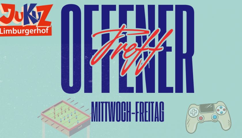 Unser offener Treff ist immer mittwochs bis freitags von 15.00 – 20.00 h für euch geöffnet – kommt vorbei und verbringt eine gute Zeit mit euren Freund:innen Euch erwarten viele