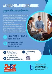 Die Fragen, denen sich das Training widmet, sind: Wie können wir mit diskriminierenden und menschenverachtenden Sprüchen umgehen? Was können wir entgegnen und wann ist Widerspruch und Argumentation gegen solche Aussagen nötig und sinnvoll?